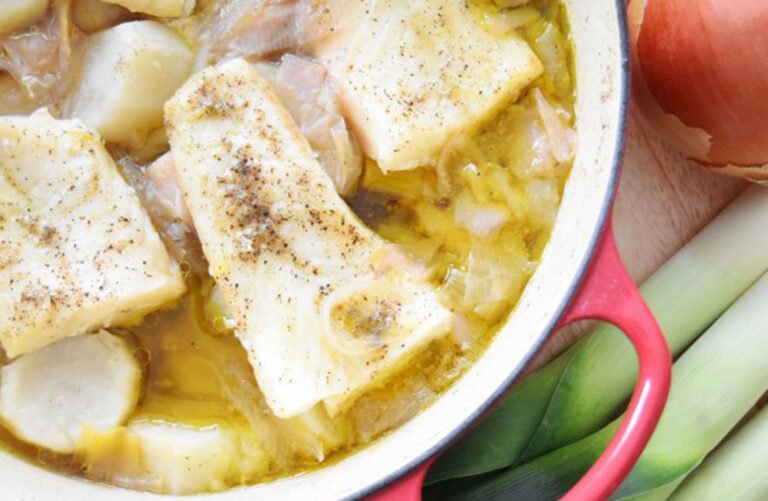 Μπακαλιάρος λεμονάτος στην κατσαρόλα